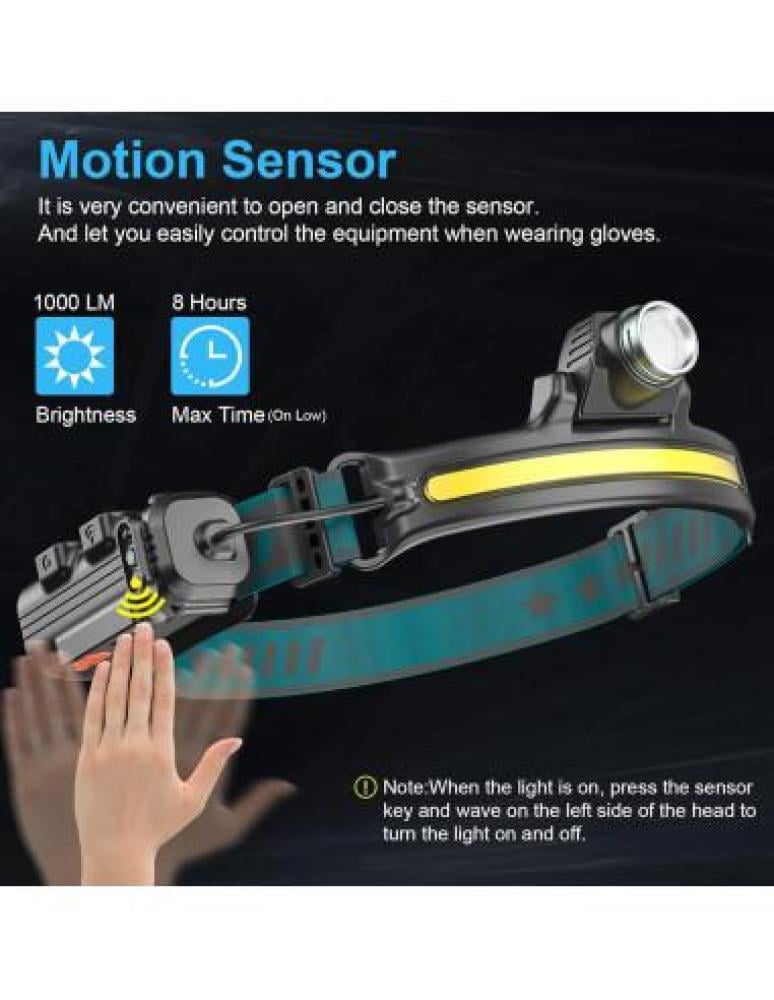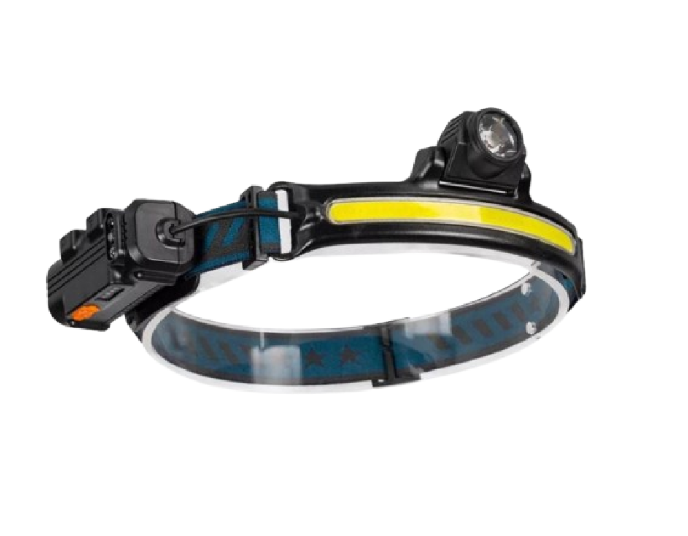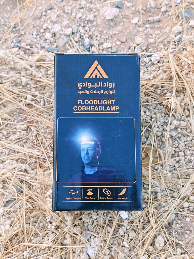 كشاف رأس من شركة رواد البوادي مع حساس حركة وشريط ليد وشاحن تايب سي.