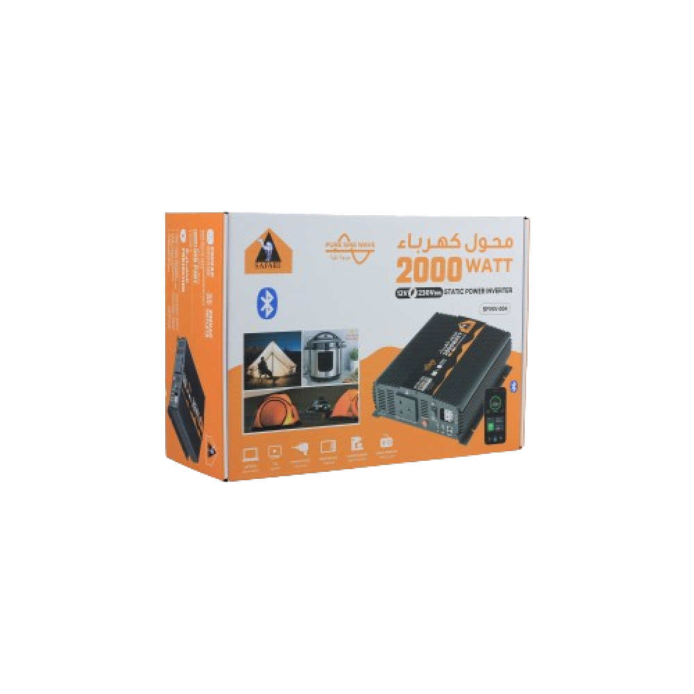 محول طاقة من سفاري بقوة 2000 واط لأجهزة الكمبيوتر المحمولة، وأجهزة التلفزيون، والأدوات الكهربائية، وأجهزة الميكروويف، وآلات صنع القهوة، وأجهزة الألعاب، وخيار البلوتوث.